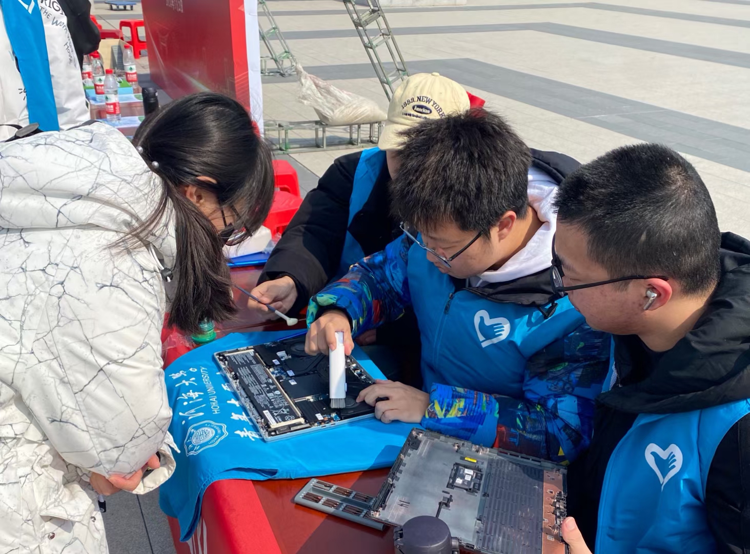活动现场,学院志愿者们利用专业工具,为同学们的电脑进行全面清洁和维修。他们认真细致地清理电脑内部灰尘,优化系统运行,确保设备正常工作。与此同时,志愿者们还耐心指导同学们如何正确保养电脑,提高使用效率,让更多同学受益于此次活动。