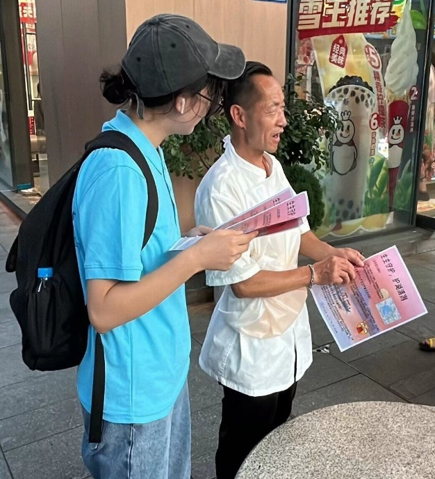 为了解基层群众的环保意识与对太湖治理成效的切身体会,实践团深入群众生活,兵分三路前往梅梁湖风景区、南长街步行街和梅园,在景区公园及市井街头采访市民,并向其发放了“生生守护,护湖清冽”太湖环保宣传单与海报,鼓励市民积极践行“绿水青山就是金山银山”的环保理念,将爱水、节水、护水的号召融入到生活中去。