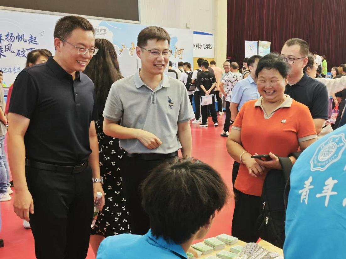 报到期间,校长杨桂山、党委副书记、副校长陆国宾、副校长沈扬在相关职能部门同志的陪同下,莅临学院报到点指导迎新工作,与现场新生、家长亲切交流。