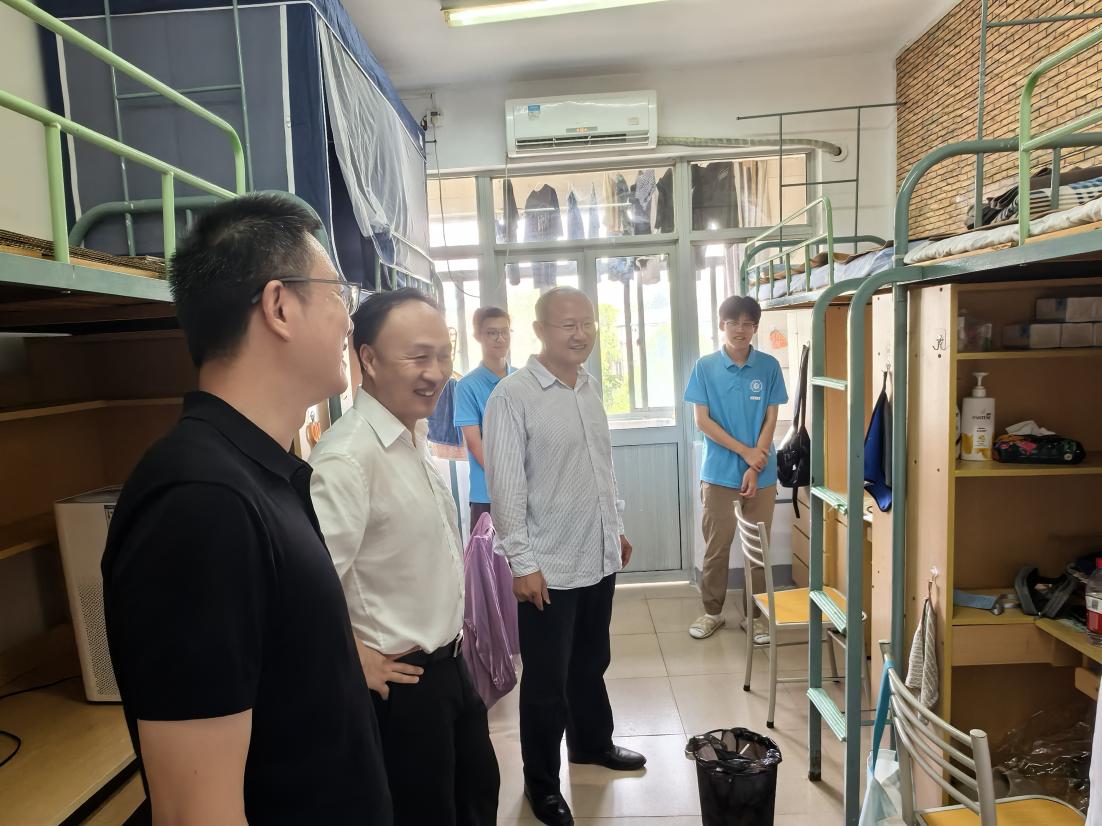 为了更直观的了解新生们的到校状态和生活情况,学院党委书记董涌波、院长刘小峰、党委副书记李晓东带队走访新生宿舍。与刚入住的同学们亲切交流,询问大家开学入住后是否顺利以及新学期的准备。同时,提醒同学们要保持宿舍整洁,注意用电安全、财产安全等,共同维护校园的和谐稳定。在交流中,领导们耐心倾听学生们的心声,对大家在学习和生活中遇到的问题,及时给与建议和鼓励。
