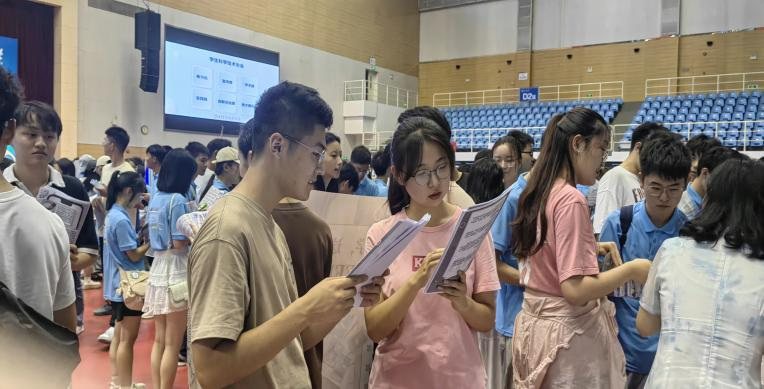 9月12日下午4时,参与招新的学生干部乘坐大巴车于常州校区集体前往江宁校区。招新工作于下午6时在文体中心篮球馆正式开始。上一届任职的干部们发挥余热,早早搭建摊位准备传单。各学生组织从主席到部长皆积极参与,向参与本次活动的新生派发宣传页,耐心讲解部门工作性质,为学生答疑解惑并鼓励大家踊跃报名。活动伊始便收获强烈反响,前来咨询的新生逐渐增多,学院摊位一时间门庭若市。参与活动的2024级新生们对学生组织表现出了浓厚的兴趣,纷纷加入相关群聊,留下联系方式与意向部门,希望能够投身于学生组织大家庭。