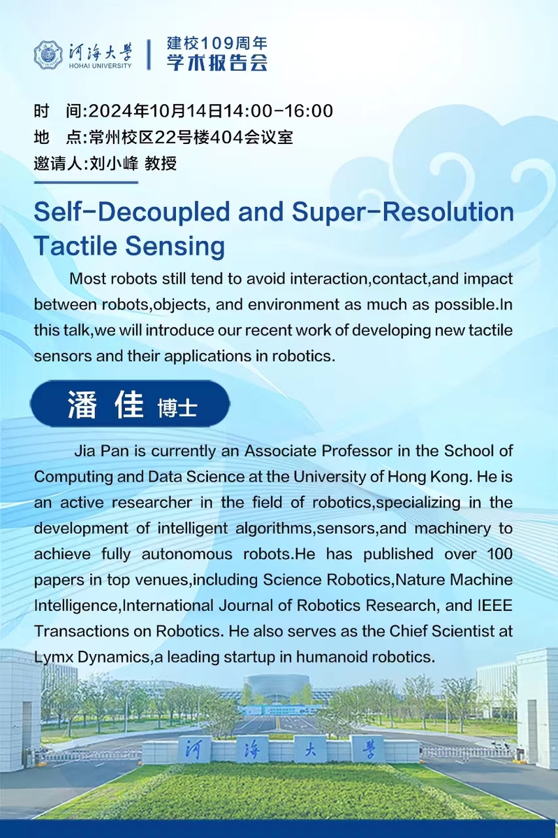 学术报告:Self-Decoupled and Super-Resolution Tactile Sensing