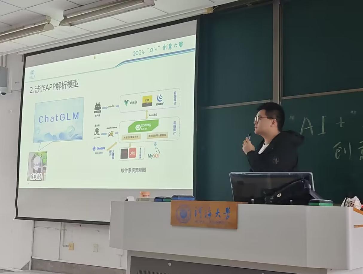 随后,2022级学长丁泽楷分享了自身的比赛经验,并介绍了多个AI创意项目。他鼓励同学们在人工智能、自动化控制、机器学习和数据分析等领域深入研究,提出具有创新性、实用性和前瞻性的项目方案。丁学长的演讲激发了在场同学对人工智能领域的好奇心与探索欲,为他们的参赛提供了宝贵的借鉴与启示。